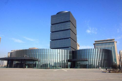 交易大樓整個建筑神似中國古代晶瑩剔透的玉琮,總建筑面積約5.5萬平方米。交易大樓是集辦公、大型會議、貴賓接待、金融服務等多種功能于一體的一站式綜合辦公大樓。其中,900平方米的交易大廳有266個交易席位,還有服務于各大交易商的40多個VIP席位;富麗堂皇的多功能廳能容納2000人的會議或1000人的宴會,可開展各種大型室內(nèi)高峰論壇、文化演出等活動。