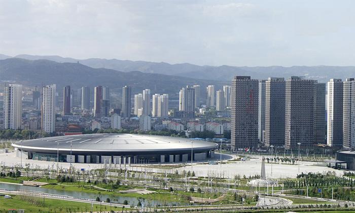 山西國際展覽中心采用古代玉璧與現(xiàn)代飛碟相結(jié)合的圓形造型,建筑面積5.2萬平方米,使用面積3.6萬平方米,展館直徑約260米,共可布設(shè)1176個標準展位,展位可根據(jù)需要隨意組合。整個展館科技含量高、施工難度大,榮獲國家鋼結(jié)構(gòu)優(yōu)質(zhì)工程金獎。是目前華北地區(qū)面積最大、最具現(xiàn)代化的國際性展館。