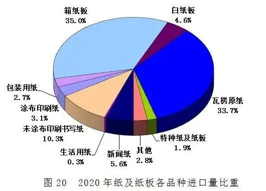 8、瓦楞原紙:2020年進口量大于出口量,凈進口量386萬噸。