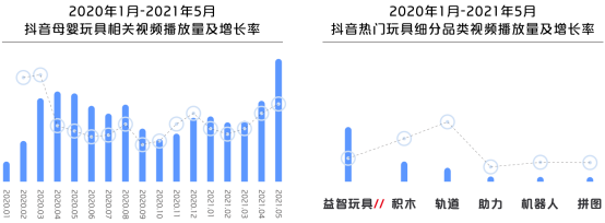 抖音平臺(tái)上兒童玩具和益智玩具話題視頻在母嬰類(lèi)視頻中長(zhǎng)期熱度不減,早教益智疊加IP聯(lián)名爆款頻出。