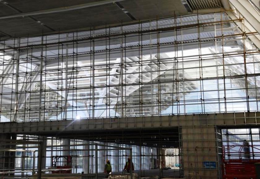 據介紹,目前國家會展中心(天津)一期展館區主體及外檐工程已完工,正在進行機電安裝、裝修及室外工程的收尾等工作,計劃于2021年6月投入使用。二期工程的基礎工程已完成,展廳主體鋼結構工程基本完成,交通連廊及天橋主體鋼結構施工進入收尾階段,外檐幕墻和屋面已開始施工。